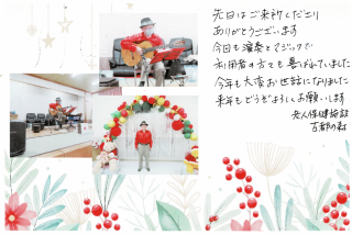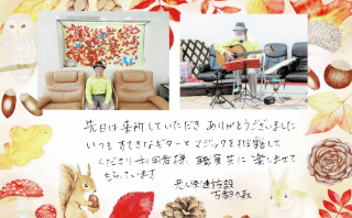 はじめてここで演奏させて頂きました。演奏に合わせて歌っていただいたり、喜んでもらえたようで良かった。 |